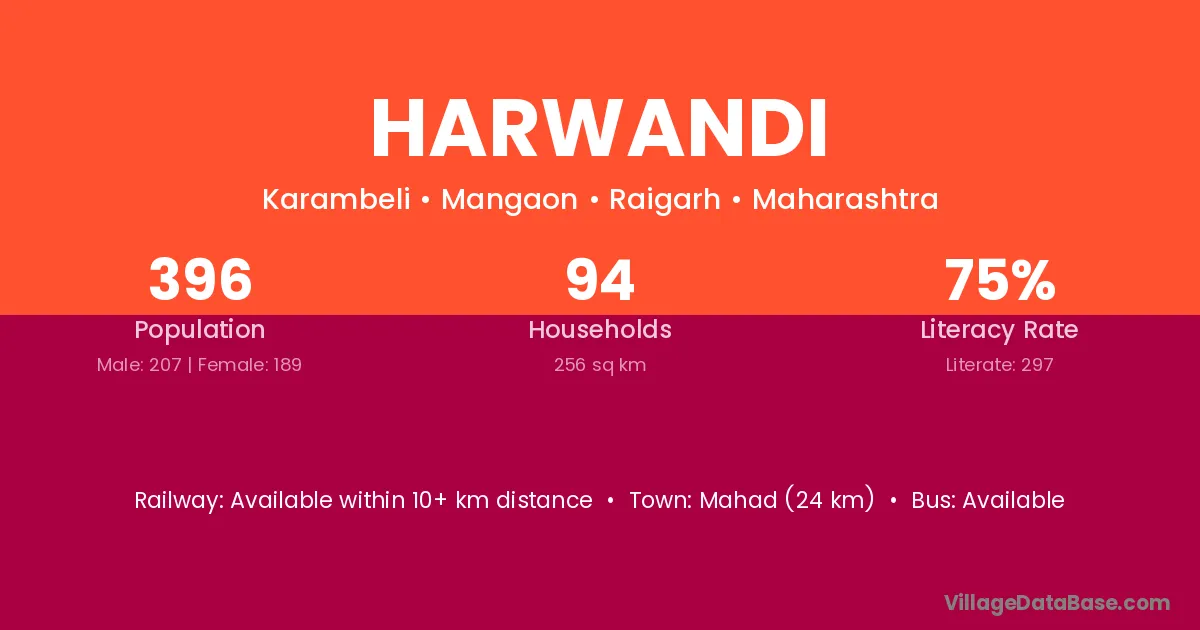 Mahad (24 km) is the nearest town to Harwandi village for major economic activities and is located approximately 24 km away.