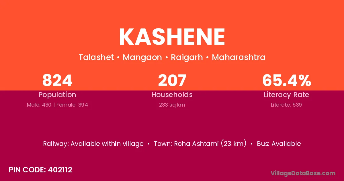 Roha Ashtami (23 km) is the nearest town to Kashene village for major economic activities and is located approximately 23 km away.