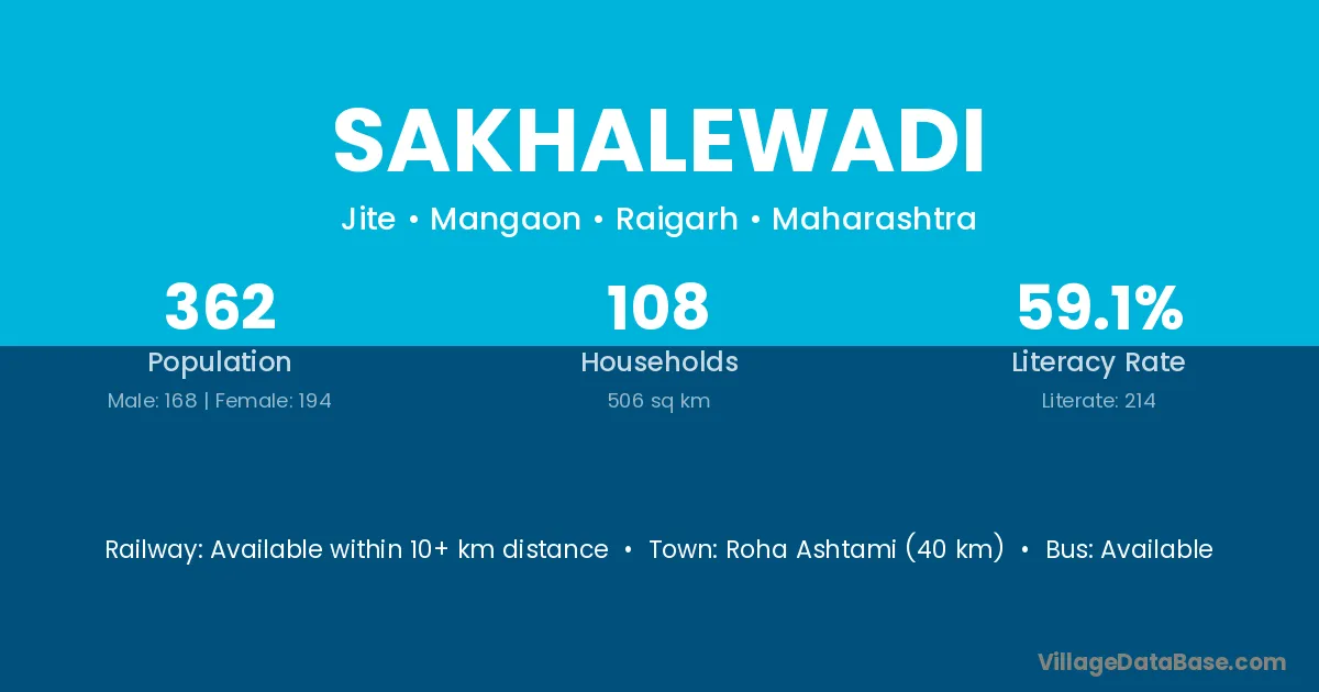 Roha Ashtami (40 km) is the nearest town to Sakhalewadi village for major economic activities and is located approximately 40 km away.