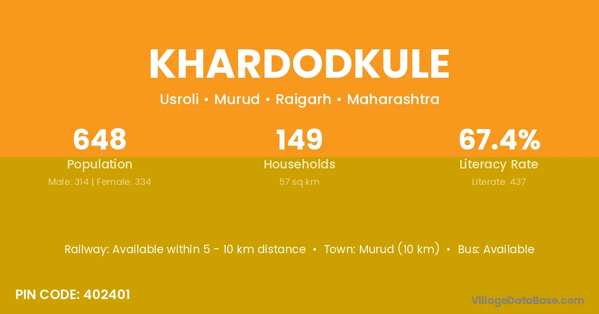 Murud (10 km) is the nearest town to Khardodkule village for major economic activities and is located approximately 10 km away.