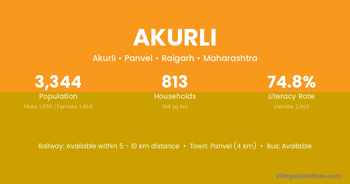 Panvel (4 km) is the nearest town to Akurli village for major economic activities and is located approximately 4 km away.