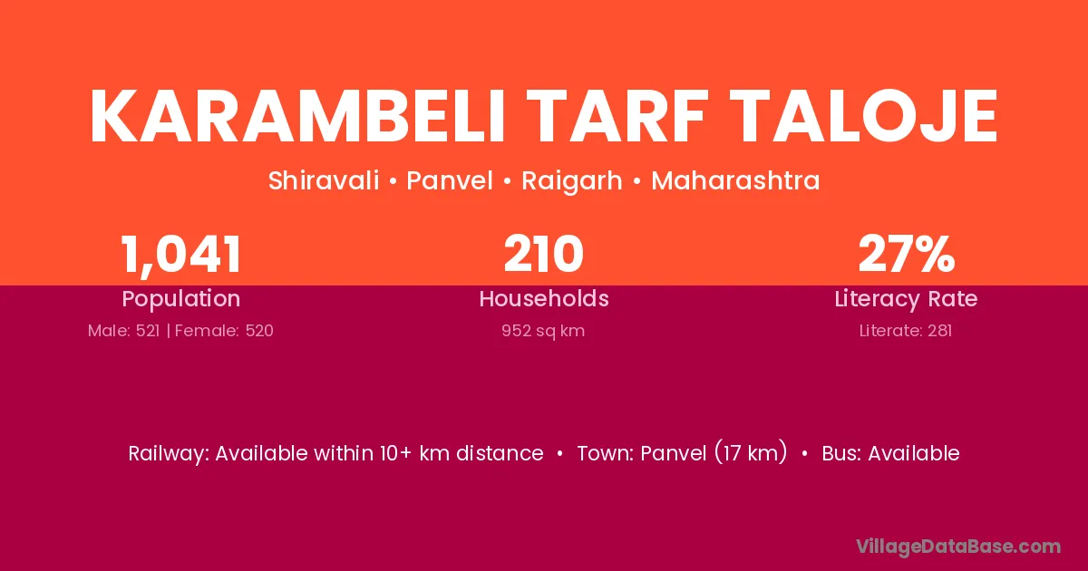 Karambeli Tarf Taloje village has a total population of 1,041 people, of which 521 are males and 520 are females.