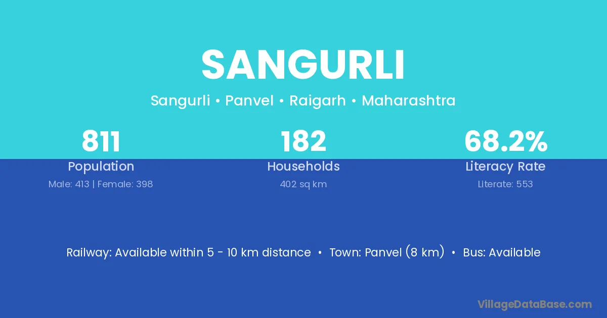 Panvel (8 km) is the nearest town to Sangurli village for major economic activities and is located approximately 8 km away.