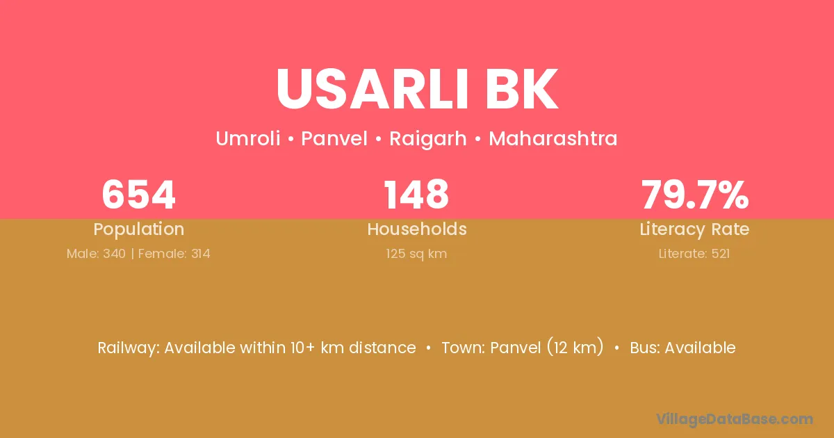Panvel (12 km) is the nearest town to Usarli Bk village for major economic activities and is located approximately 12 km away.