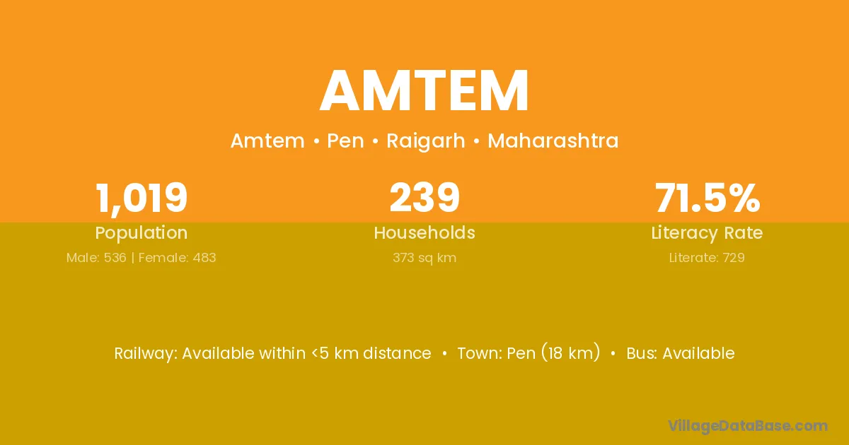 Pen (18 km) is the nearest town to Amtem village for major economic activities and is located approximately 18 km away.