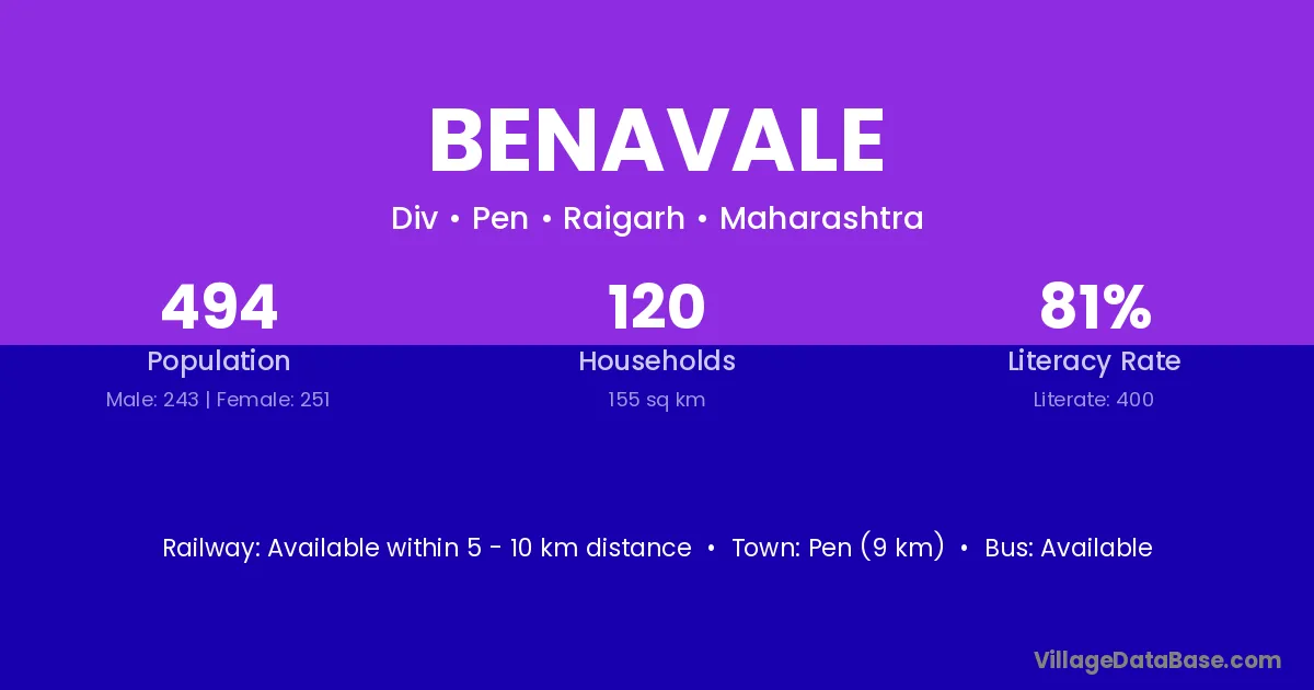 Pen (9 km) is the nearest town to Benavale village for major economic activities and is located approximately 9 km away.