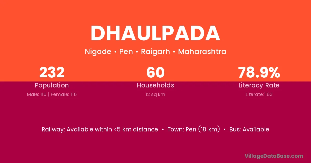 Pen (18 km) is the nearest town to Dhaulpada village for major economic activities and is located approximately 18 km away.