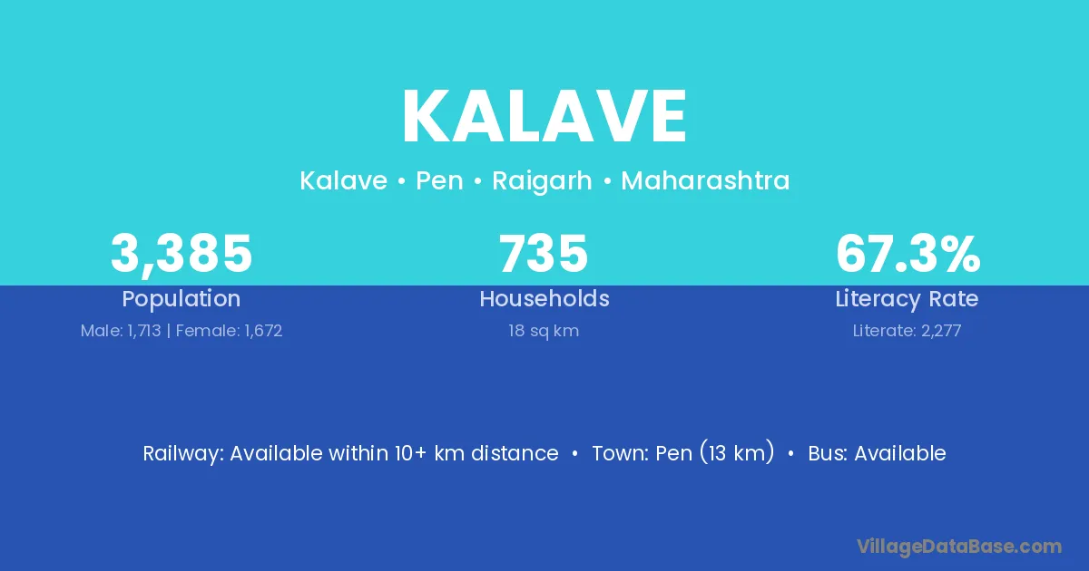Pen (13 km) is the nearest town to Kalave village for major economic activities and is located approximately 13 km away.