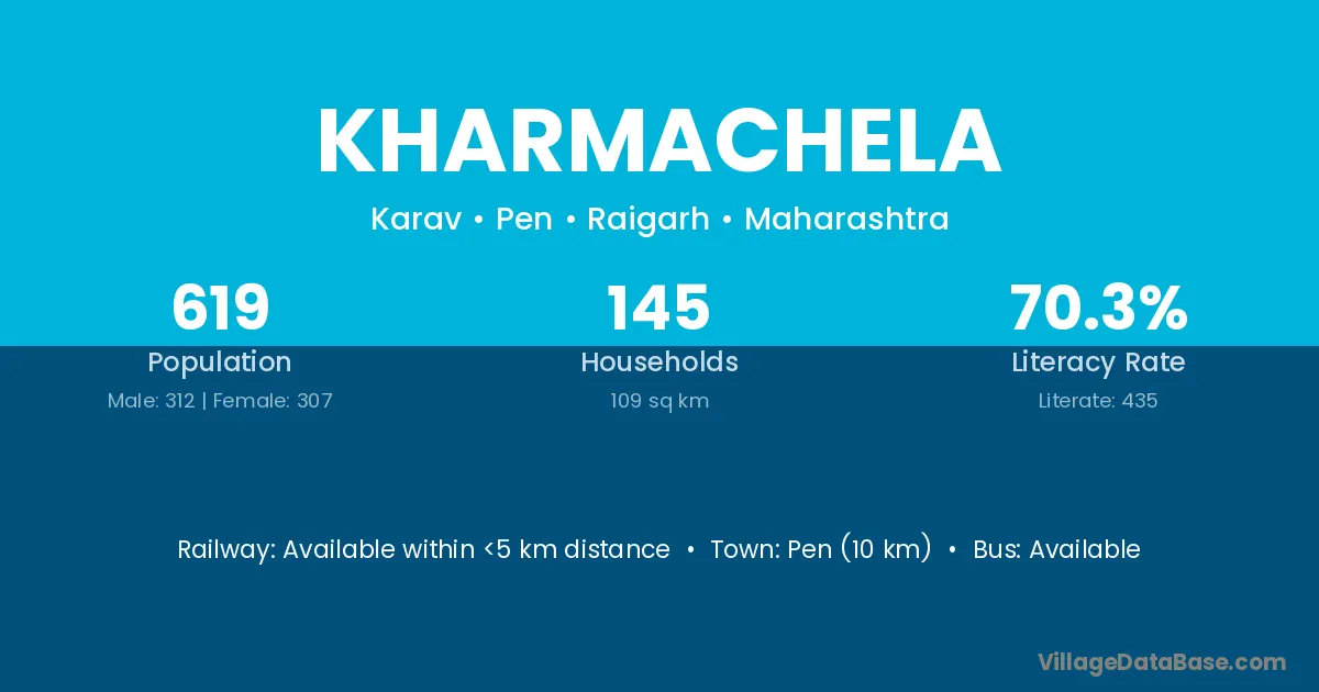 Pen (10 km) is the nearest town to Kharmachela village for major economic activities and is located approximately 10 km away.