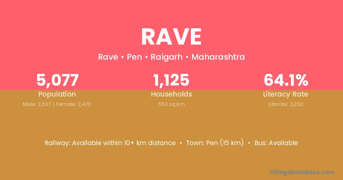 Pen (15 km) is the nearest town to Rave village for major economic activities and is located approximately 15 km away.