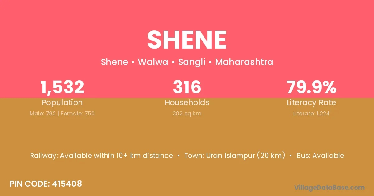 Shene village has a total population of 1,112 people, of which 534 are males and 578 are females.