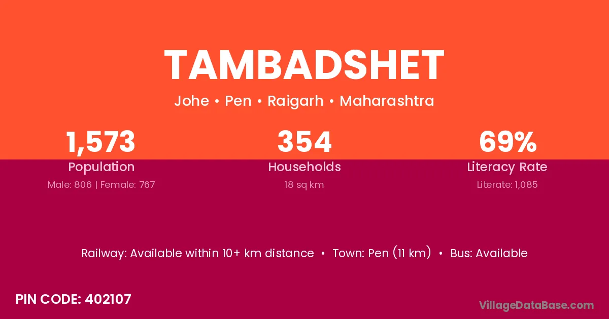 Pen (11 km) is the nearest town to Tambadshet village for major economic activities and is located approximately 11 km away.