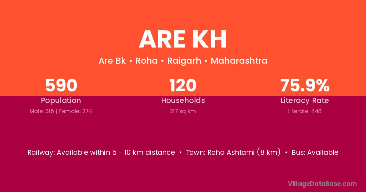 Roha Ashtami (8 km) is the nearest town to Are Kh village for major economic activities and is located approximately 8 km away.