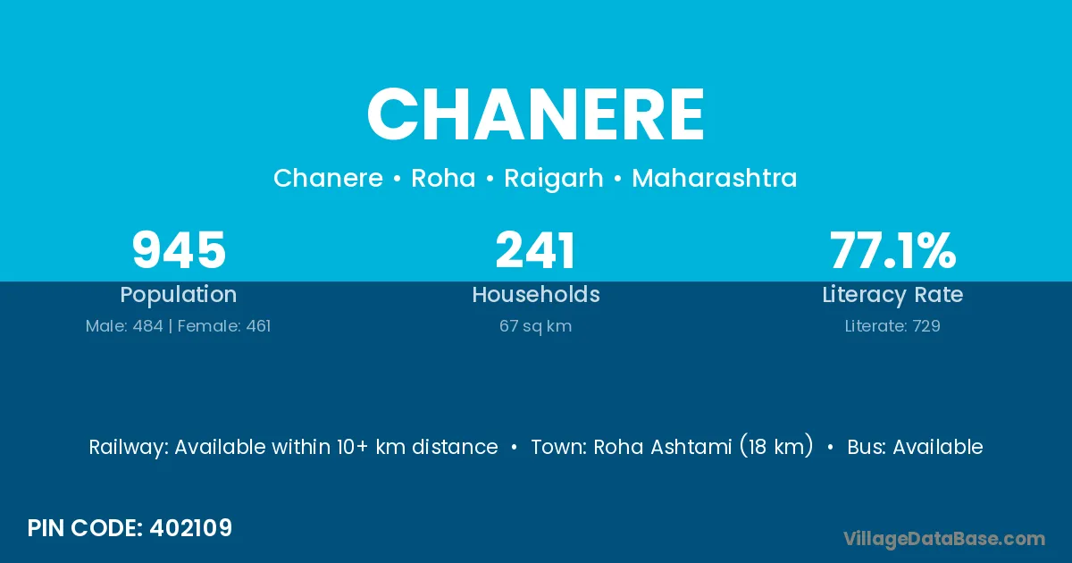 Roha Ashtami (18 km) is the nearest town to Chanere village for major economic activities and is located approximately 18 km away.