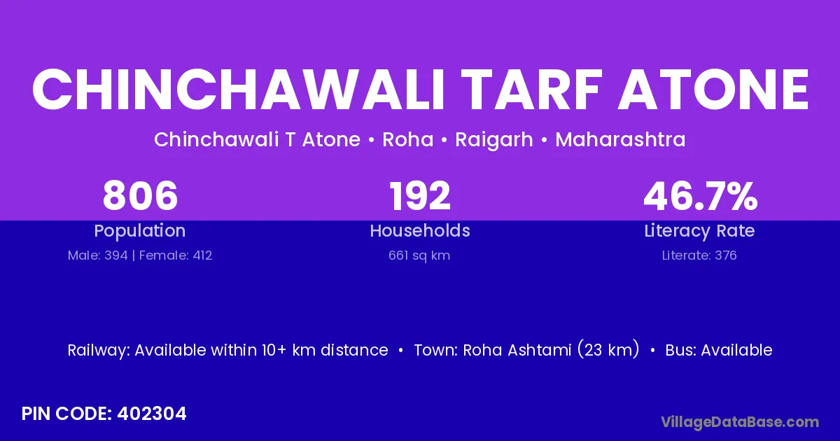 Chinchawali Tarf Atone village has a total population of 806 people, of which 394 are males and 412 are females.