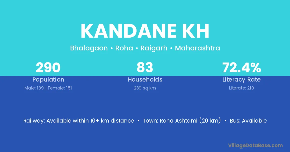 Roha Ashtami (20 km) is the nearest town to Kandane Kh village for major economic activities and is located approximately 20 km away.