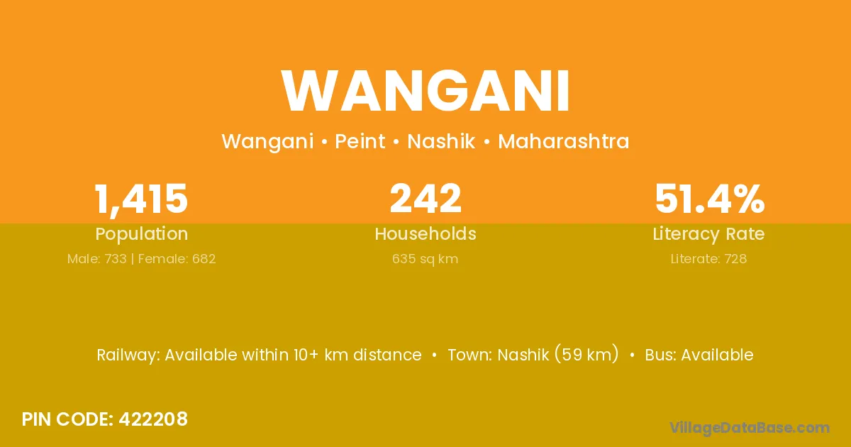 Roha Ashtami (15 km) is the nearest town to Wangani village for major economic activities and is located approximately 15 km away.