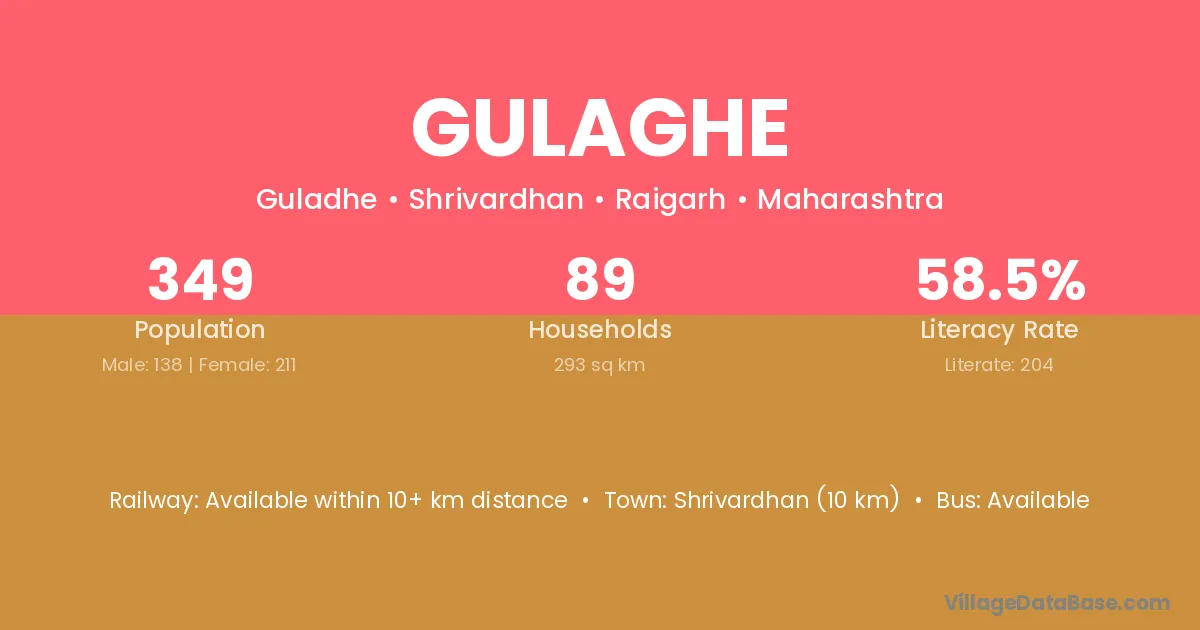 Shrivardhan (10 km) is the nearest town to Gulaghe village for major economic activities and is located approximately 10 km away.