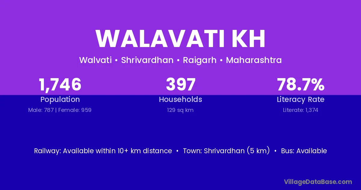 Shrivardhan (5 km) is the nearest town to Walavati Kh village for major economic activities and is located approximately 5 km away.