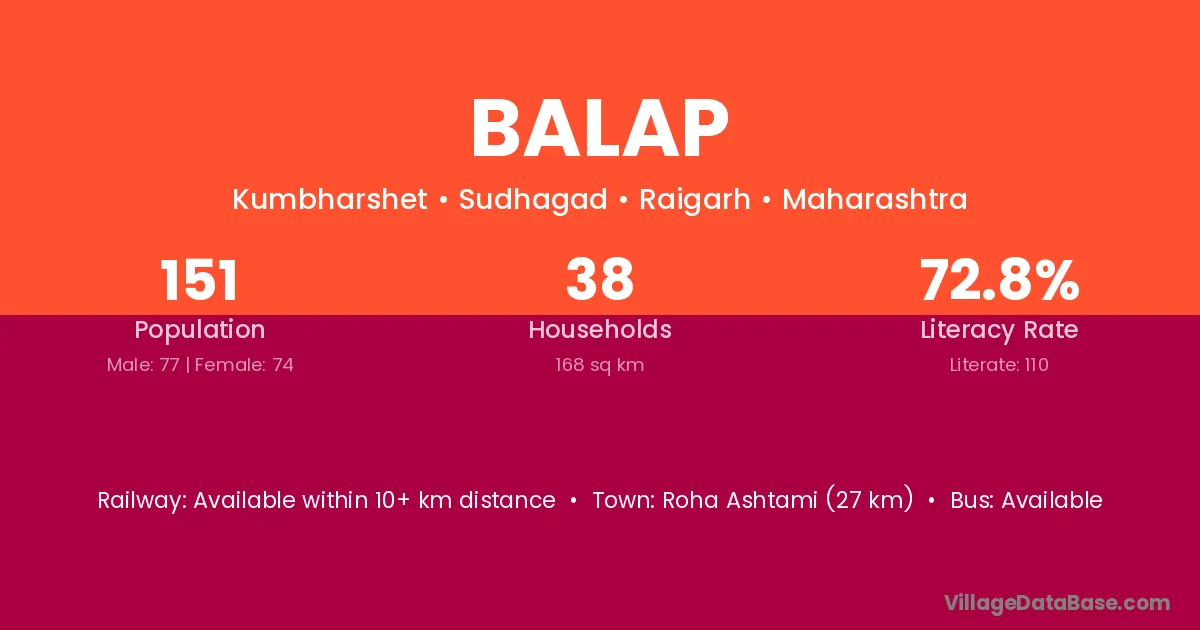 Roha Ashtami (27 km) is the nearest town to Balap village for major economic activities and is located approximately 27 km away.