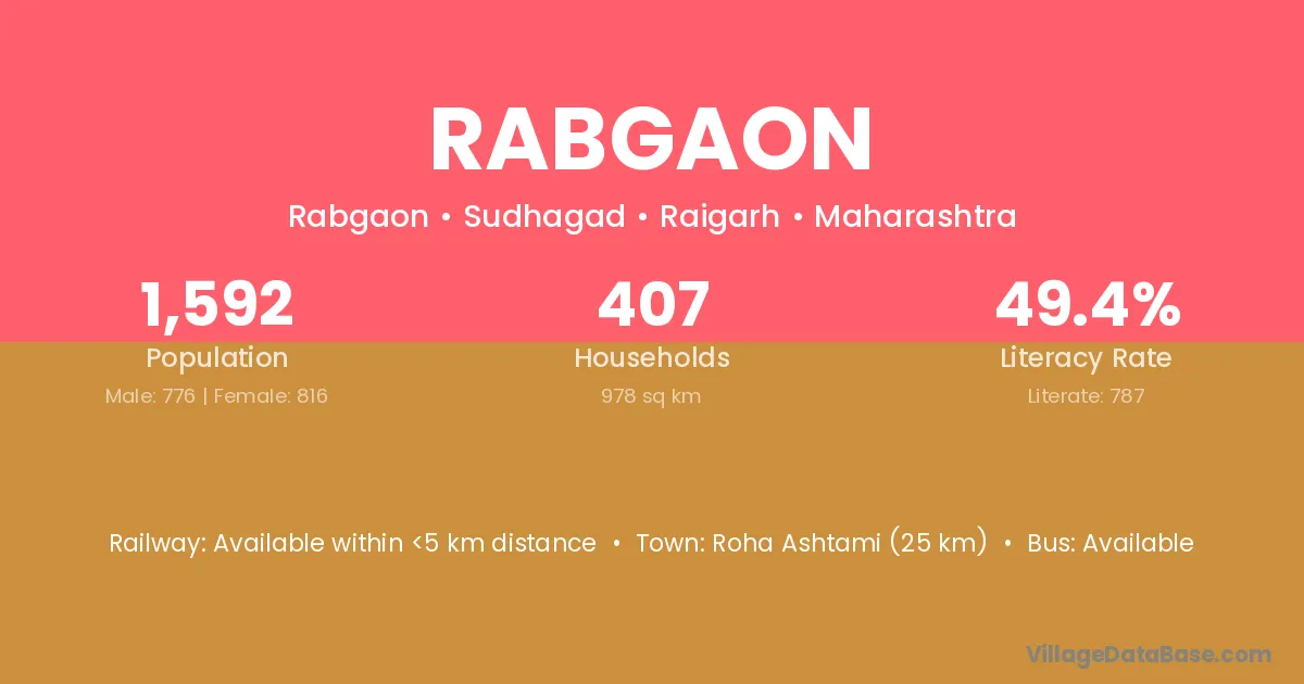 Roha Ashtami (25 km) is the nearest town to Rabgaon village for major economic activities and is located approximately 25 km away.