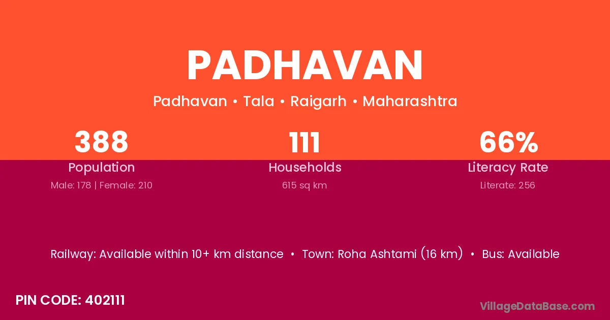 Roha Ashtami (16 km) is the nearest town to Padhavan village for major economic activities and is located approximately 16 km away.
