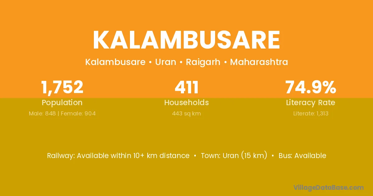 Uran (15 km) is the nearest town to Kalambusare village for major economic activities and is located approximately 15 km away.