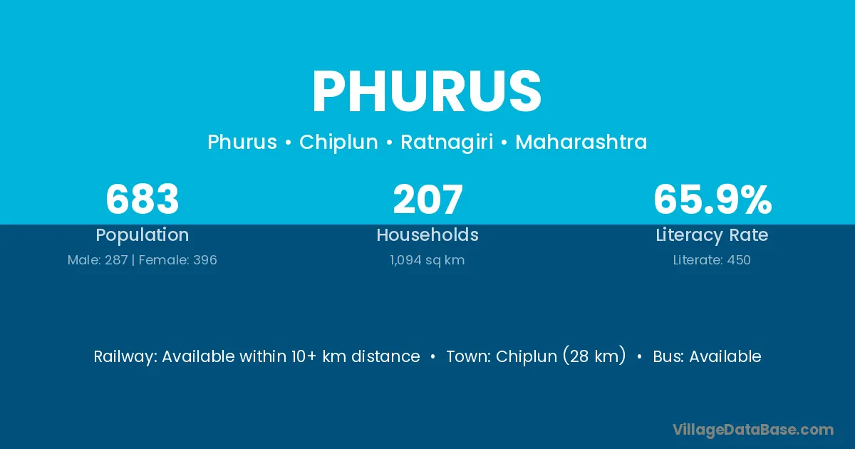 Chiplun (28 km) is the nearest town to Phurus village for major economic activities and is located approximately 28 km away.