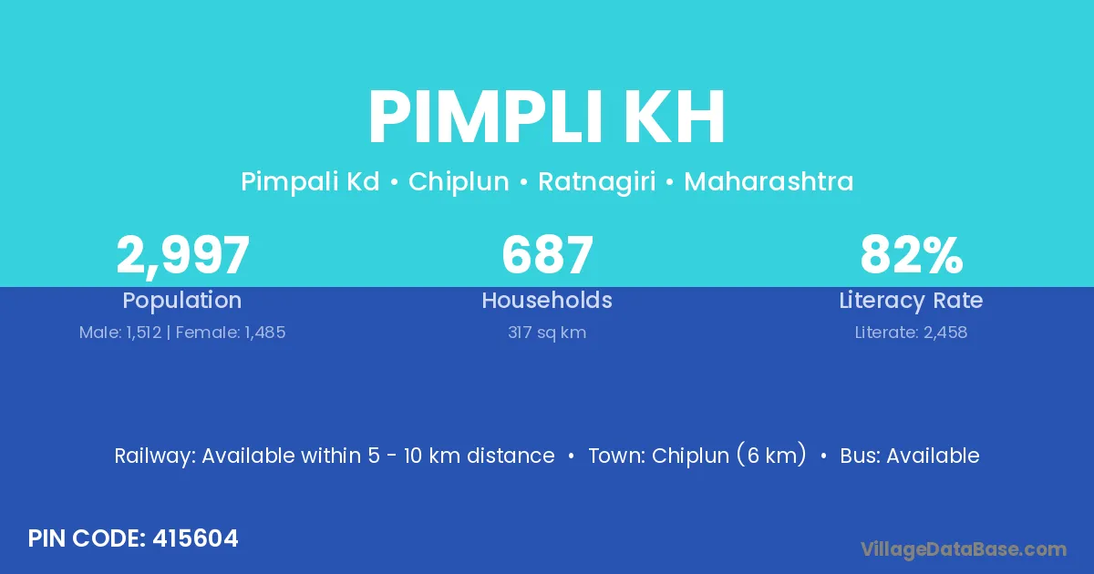 Chiplun (6 km) is the nearest town to Pimpli Kh village for major economic activities and is located approximately 6 km away.