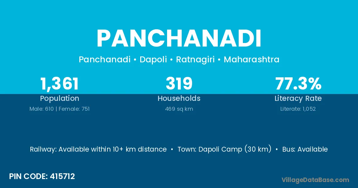 Dapoli Camp (30 km) is the nearest town to Panchanadi village for major economic activities and is located approximately 30 km away.