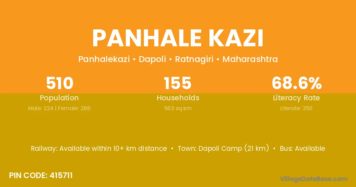 Panhale Kazi village has a total population of 510 people, of which 224 are males and 286 are females.