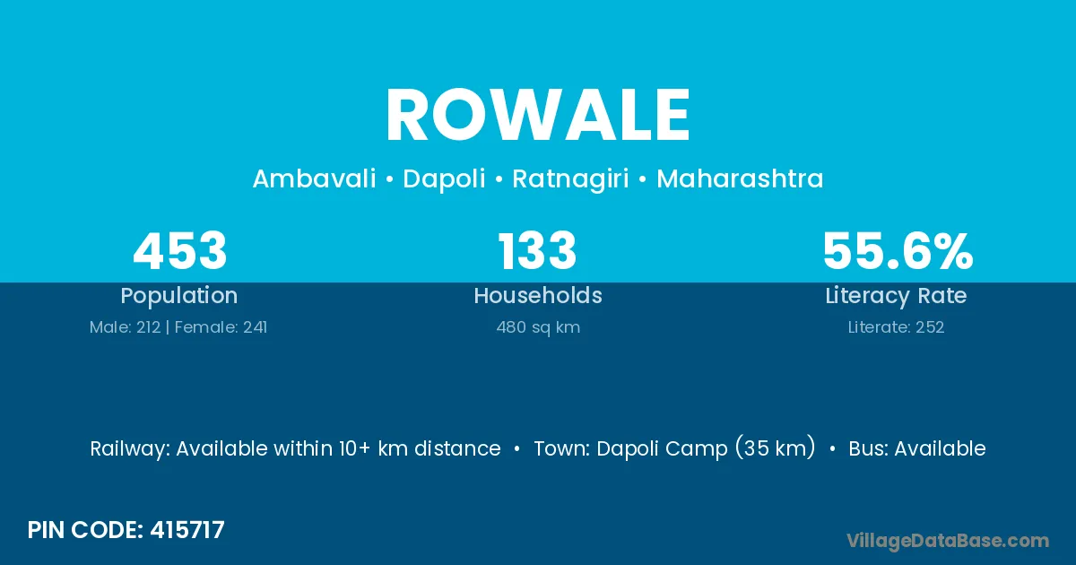 Dapoli Camp (35 km) is the nearest town to Rowale village for major economic activities and is located approximately 35 km away.