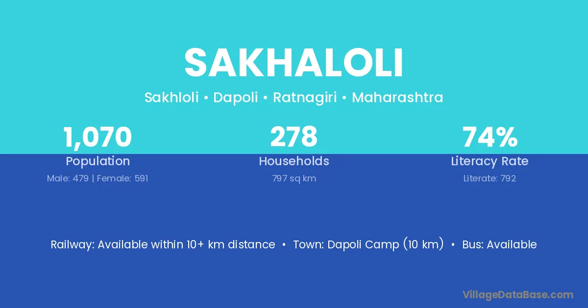 Dapoli Camp (10 km) is the nearest town to Sakhaloli village for major economic activities and is located approximately 10 km away.