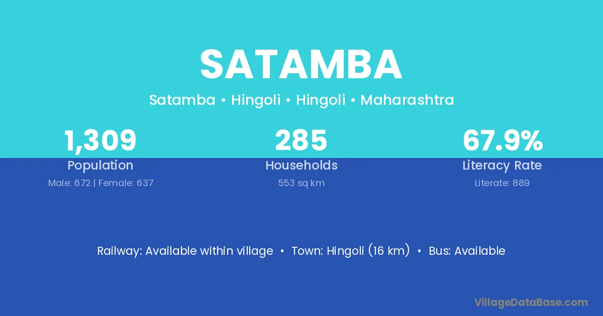 Dapoli Camp (32 km) is the nearest town to Satamba village for major economic activities and is located approximately 32 km away.