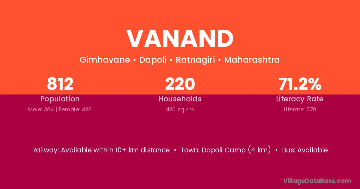 Dapoli Camp (4 km) is the nearest town to Vanand village for major economic activities and is located approximately 4 km away.