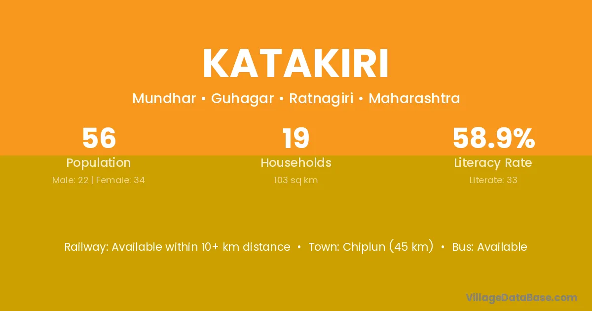Chiplun (45 km) is the nearest town to Katakiri village for major economic activities and is located approximately 45 km away.