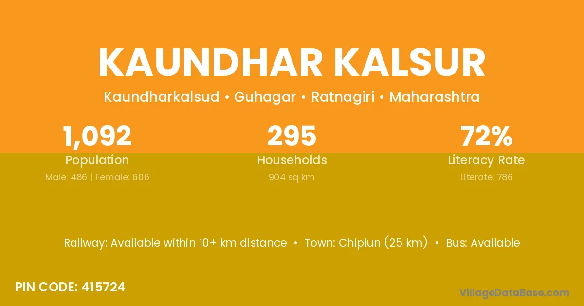 Chiplun (25 km) is the nearest town to Kaundhar Kalsur village for major economic activities and is located approximately 25 km away.