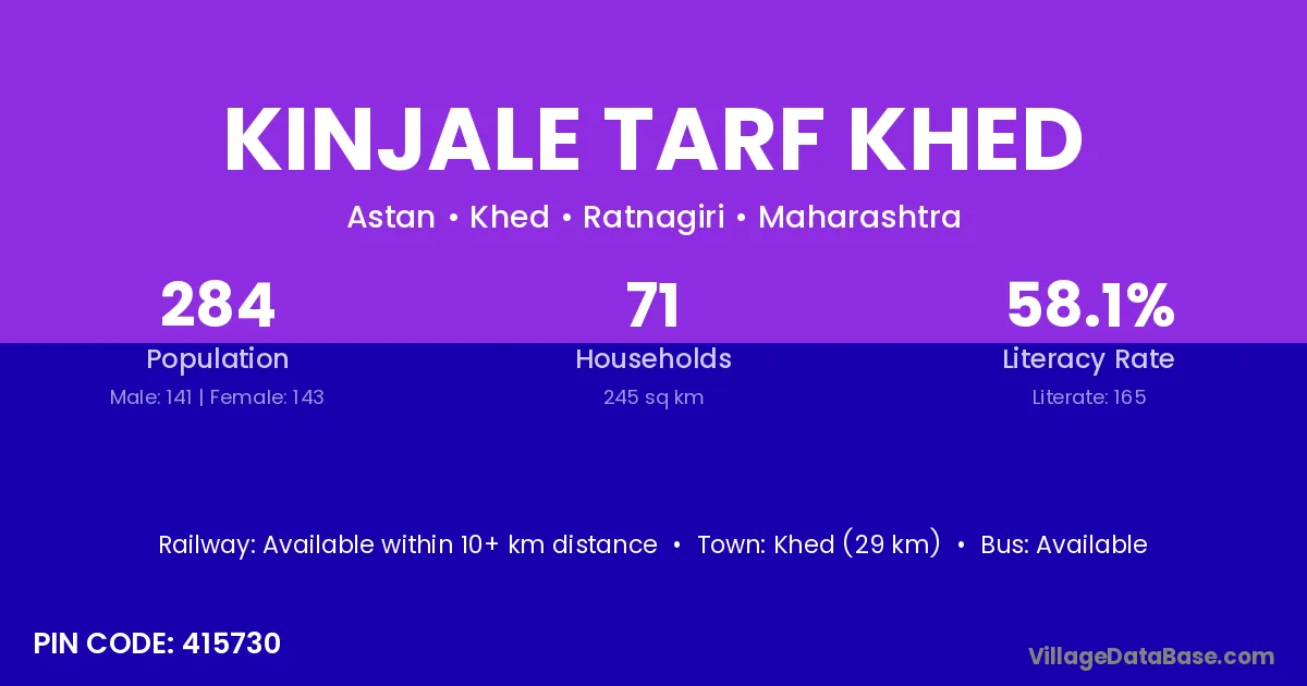 Kinjale Tarf Khed village has a total population of 284 people, of which 141 are males and 143 are females.