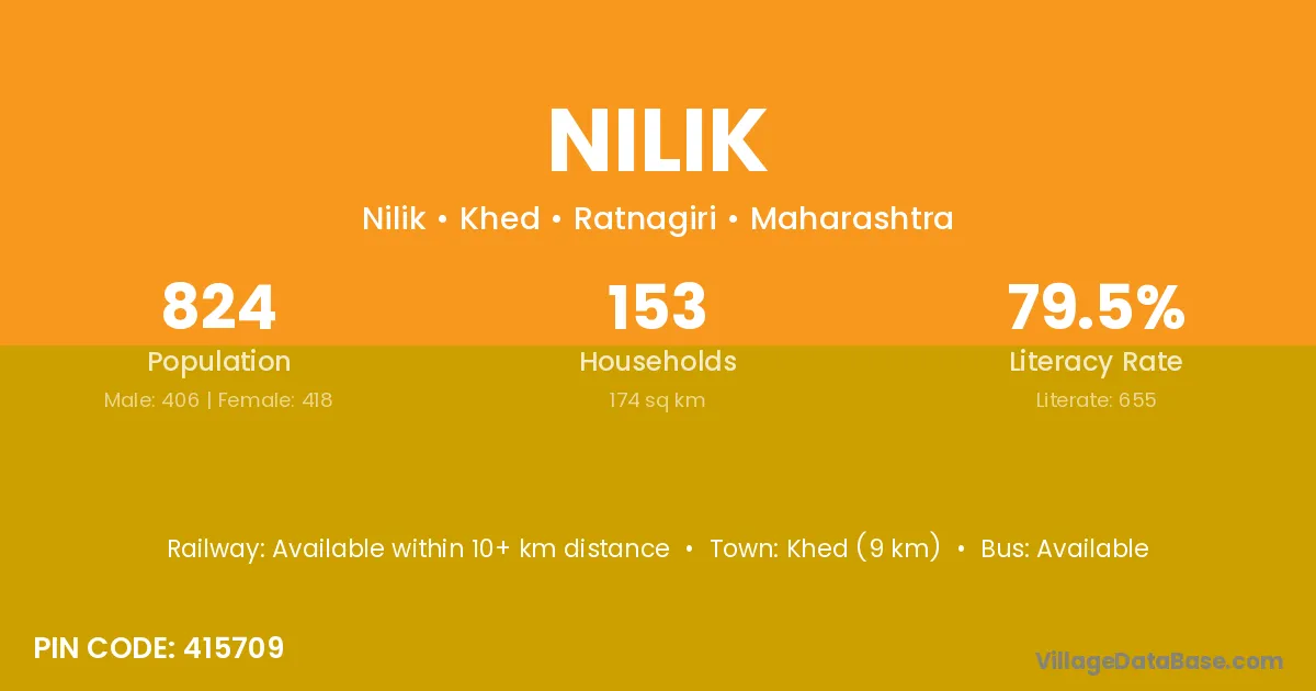 Khed (9 km) is the nearest town to Nilik village for major economic activities and is located approximately 9 km away.
