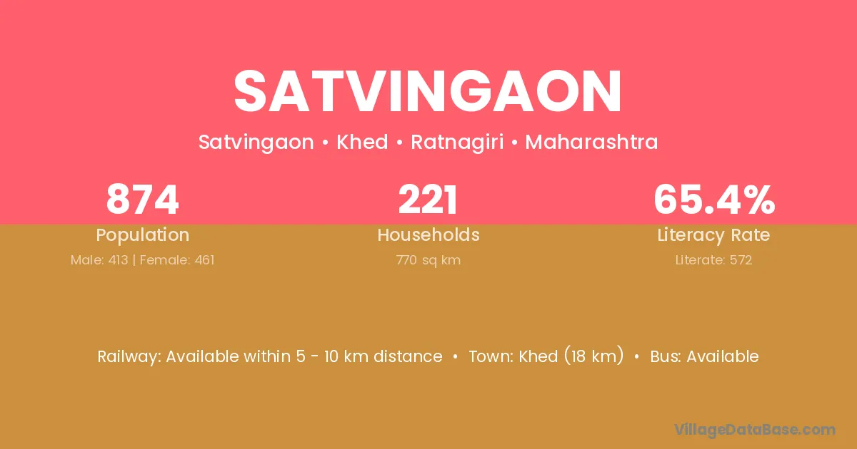 Khed (18 km) is the nearest town to Satvingaon village for major economic activities and is located approximately 18 km away.