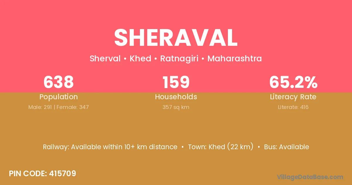 Khed (22 km) is the nearest town to Sheraval village for major economic activities and is located approximately 22 km away.