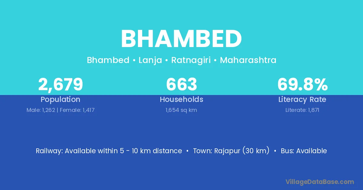 Rajapur (30 km) is the nearest town to Bhambed village for major economic activities and is located approximately 30 km away.