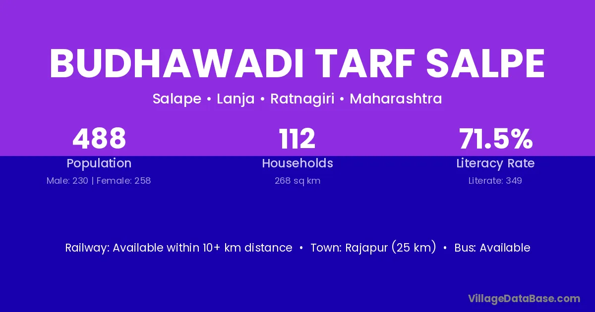 Budhawadi Tarf Salpe village has a total population of 488 people, of which 230 are males and 258 are females.