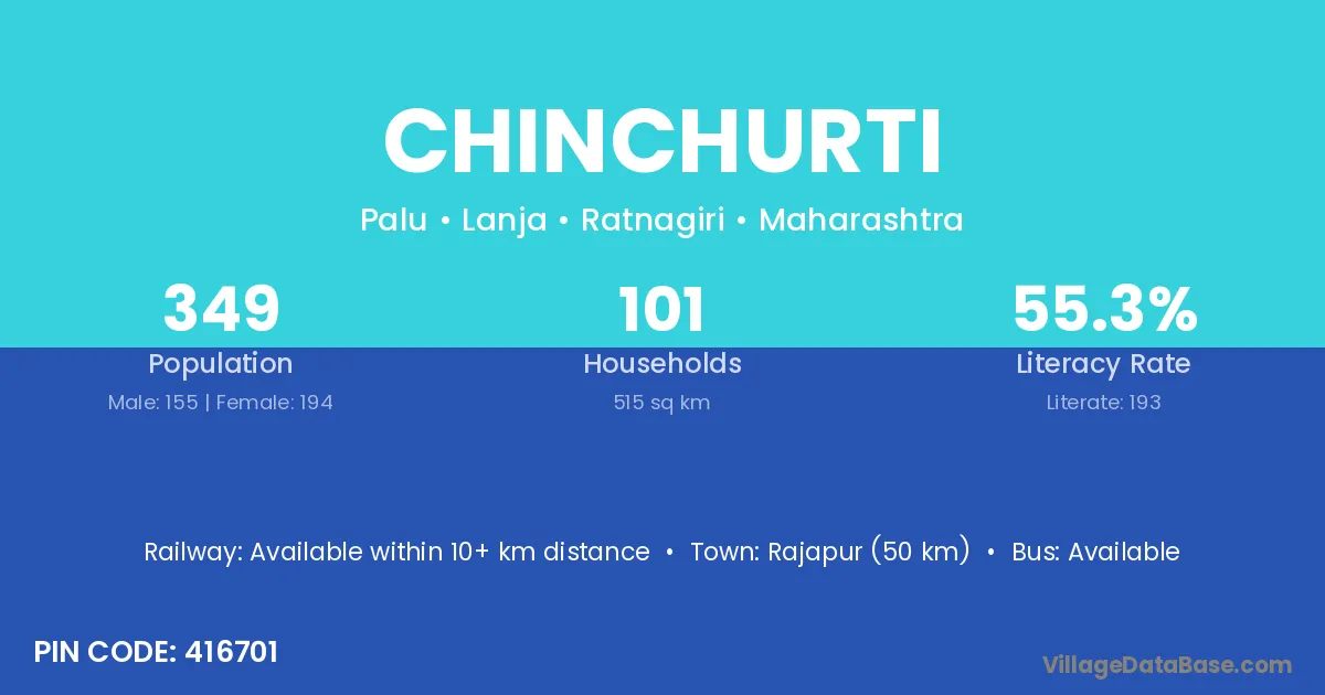 Rajapur (50 km) is the nearest town to Chinchurti village for major economic activities and is located approximately 50 km away.