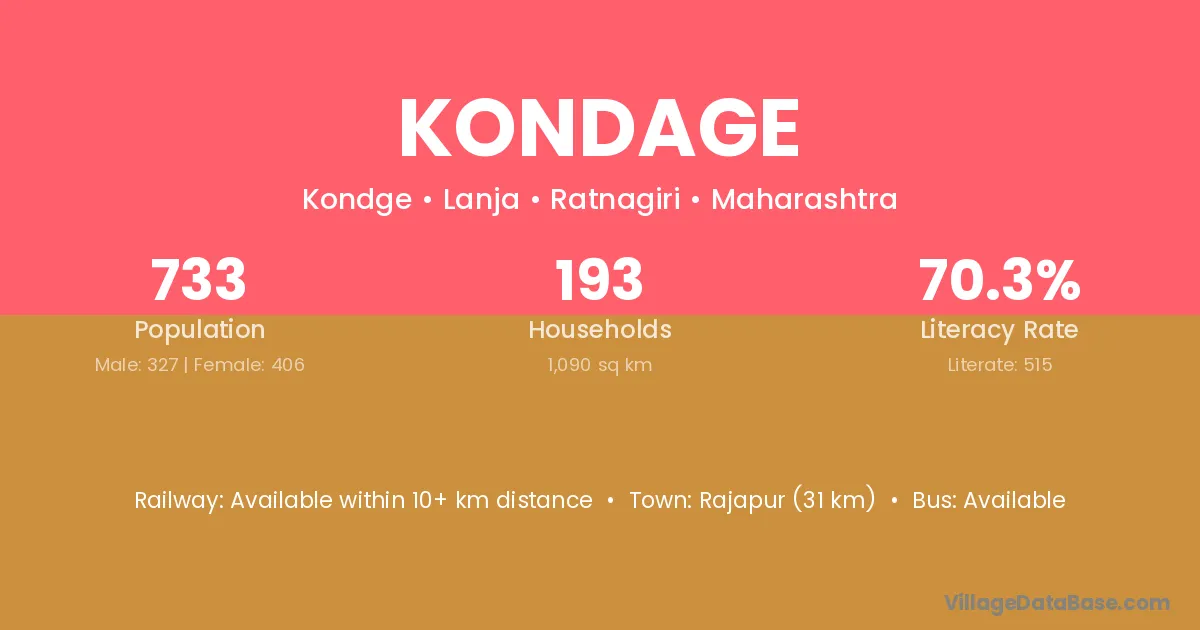 Rajapur (31 km) is the nearest town to Kondage village for major economic activities and is located approximately 31 km away.