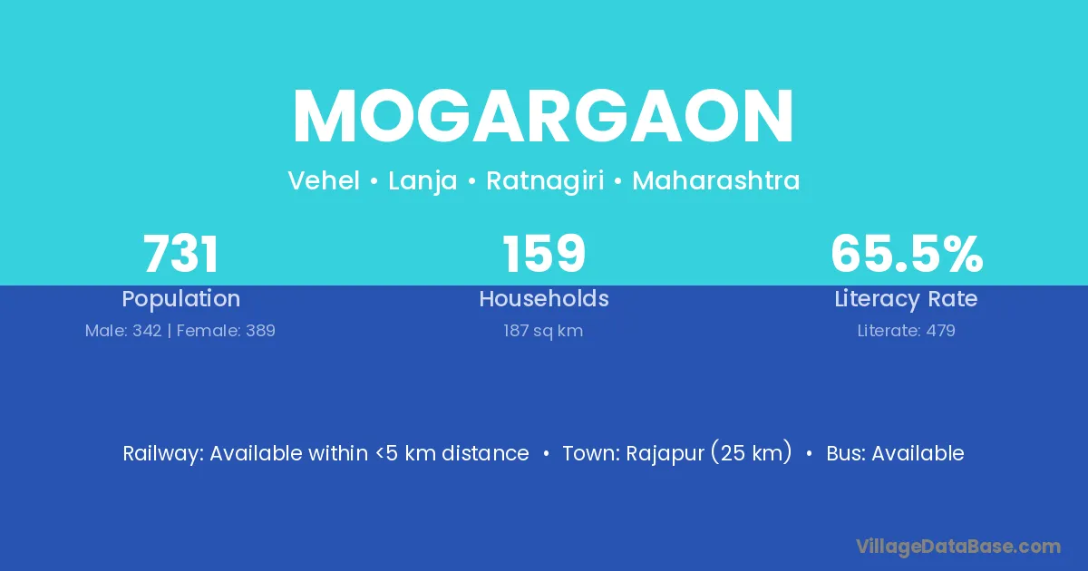 Rajapur (25 km) is the nearest town to Mogargaon village for major economic activities and is located approximately 25 km away.