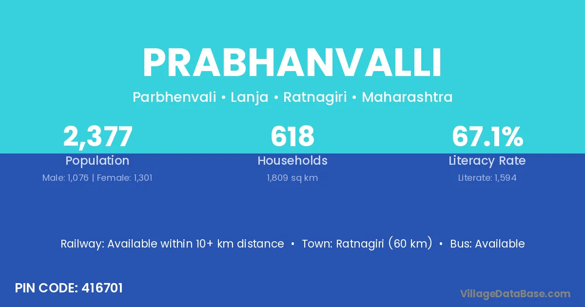 Ratnagiri (60 km) is the nearest town to Prabhanvalli village for major economic activities and is located approximately 60 km away.
