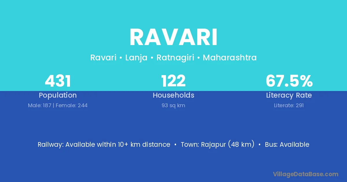 Rajapur (48 km) is the nearest town to Ravari village for major economic activities and is located approximately 48 km away.
