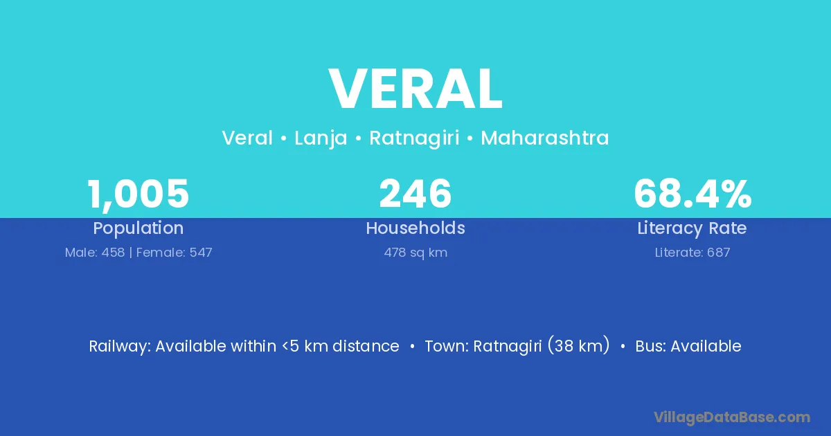 Ratnagiri (38 km) is the nearest town to Veral village for major economic activities and is located approximately 38 km away.