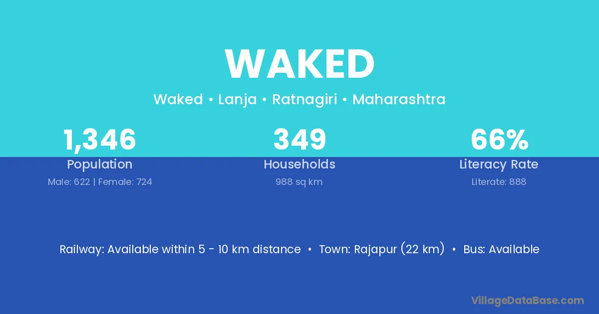 Rajapur (22 km) is the nearest town to Waked village for major economic activities and is located approximately 22 km away.